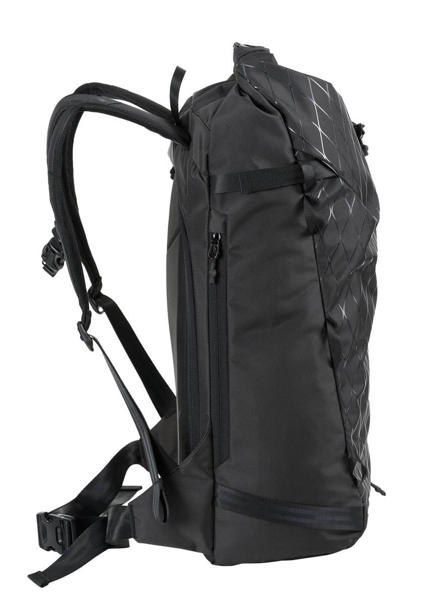 Especifically designed for backcountry splitboarding, minimalist yet multi- functional and variable in size.The main compartment can be expanded from 22-30L by its roll-top closure. A large, double zipper backpanel access lets you quickly get to all your gear, even if stuffed at the very bottom of your bag.