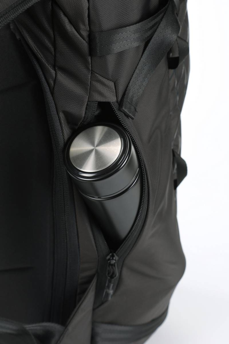 - External water bottle zip-pocket