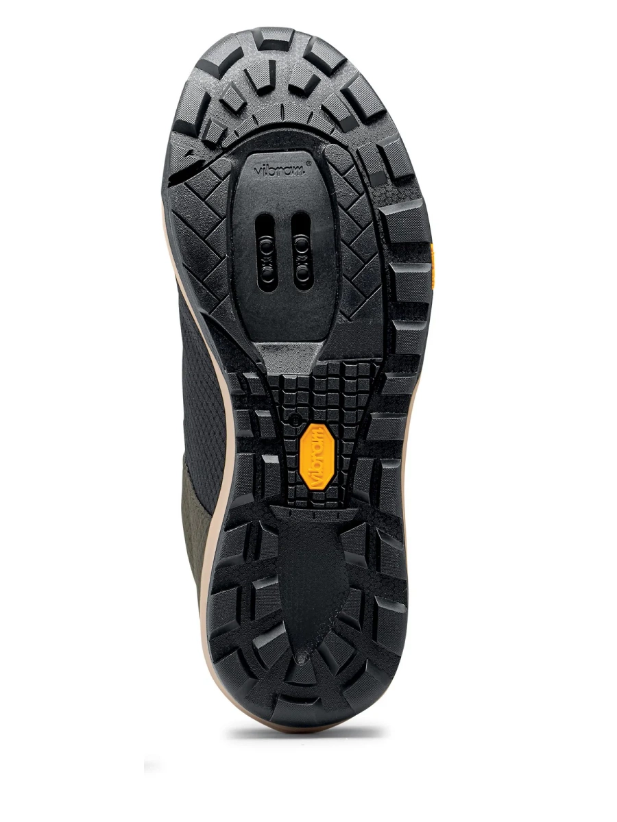Wolftrax Vibram sole | Clipless Vibram sole with optimized shape, for easy click-in and click-out. With its large flat area around the click point, the Wolftrax sole offers grip and stability, not only when cycling but also when walking. The sole profile has been designed with large lugs and wide areas for pressure relief, providing traction and control on all types of terrain, both wet and dry. The midsole with cushioned heel optimally absorbs vibrations and ensures maximum comfort on all road surfaces.