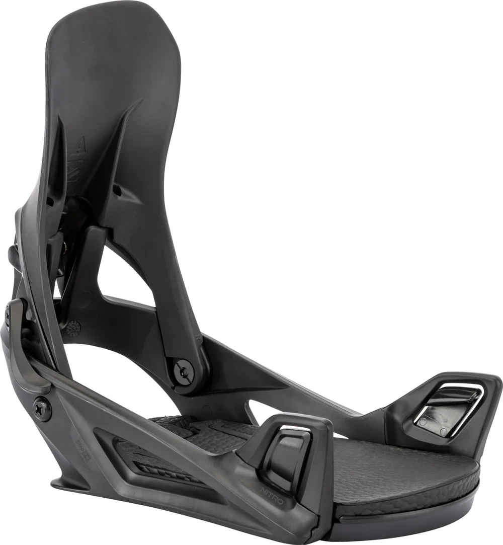 Introducing the Nitro Step On® snowboard binding, designed for riders looking for an easy-in, easy-out convenience system without sacrificing performance or control. Three connecting points on the toe and heel provide a strap-like feel and response while making Step On® the most natural and comfortable ride to date. Foothold, board control, and speed are paired with the simplicity and convenience of Step On®, now available from your trusted Nitro dealer.