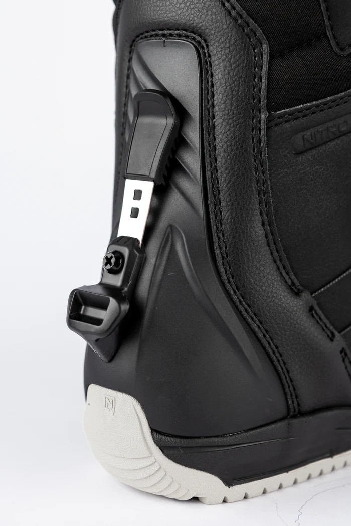 Introducing the Nitro Step On® snowboard binding, designed for riders looking for an easy-in, easy-out convenience system without sacrificing performance or control. Three connecting points on the toe and heel provide a strap-like feel and response while making Step On® the most natural and comfortable ride to date. Foothold, board control, and speed are paired with the simplicity and convenience of Step On®, now available from your trusted Nitro dealer.