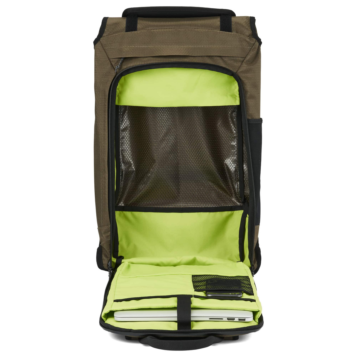 - Two access points to the main compartment: roll-top system with Velcro closure and all-around zipper on the back.