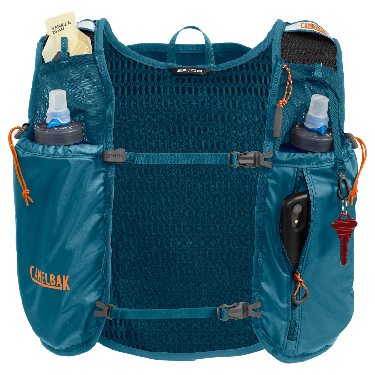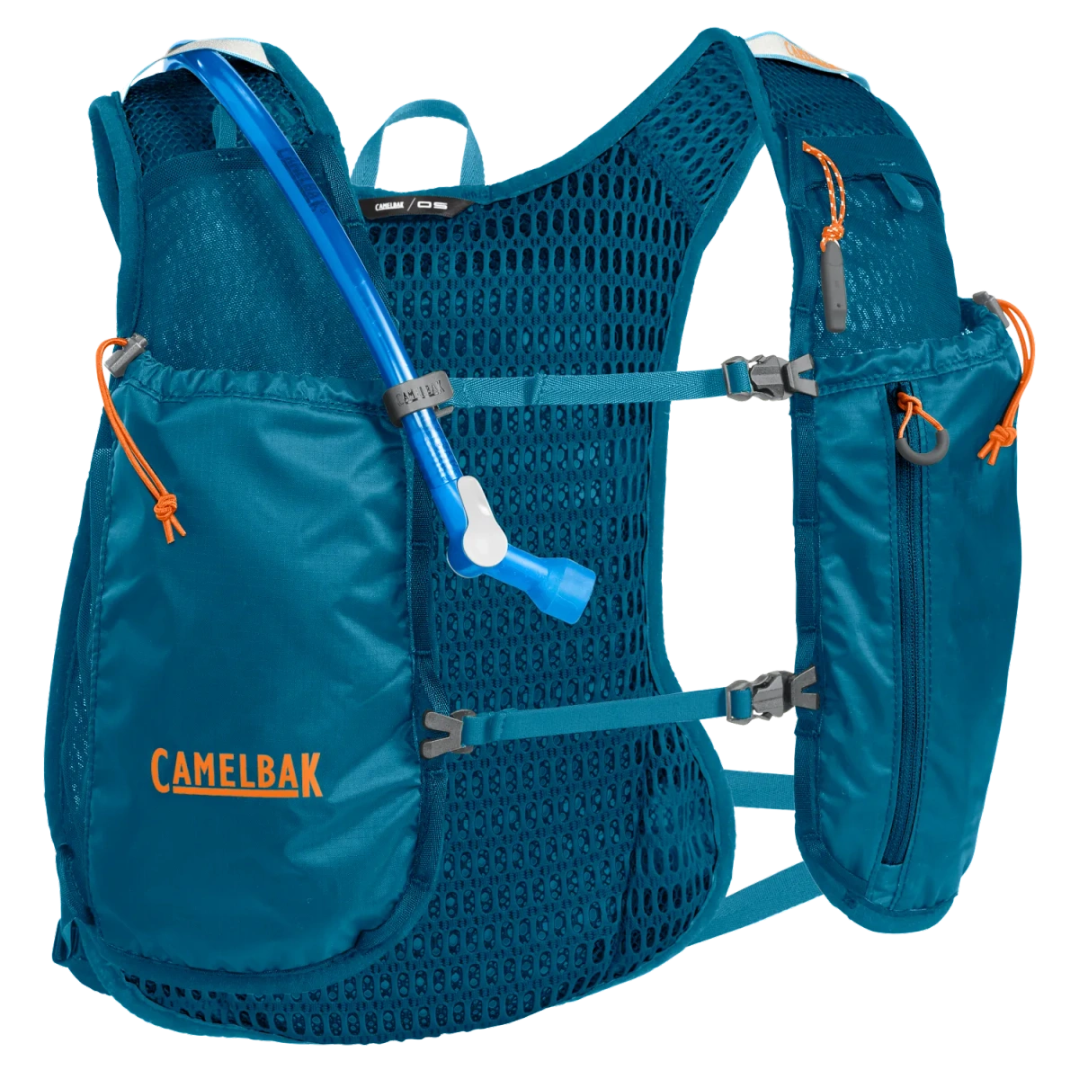The Circuit™ Run Vest is made for those trips where the journey is the destination. 3D vent mesh provides airflow and breathability, mile after mile, while a secure phone pocket keeps your phone, wallet or car keys close at hand. Dual adjustable sternum straps create a customizable fit, and cargo pockets provide maximum storage capacity. The Crux® reservoir flows steady hydration for a full day of running. Traverse new trails, reach new heights, and become your best with the Circuit™ Run Vest.