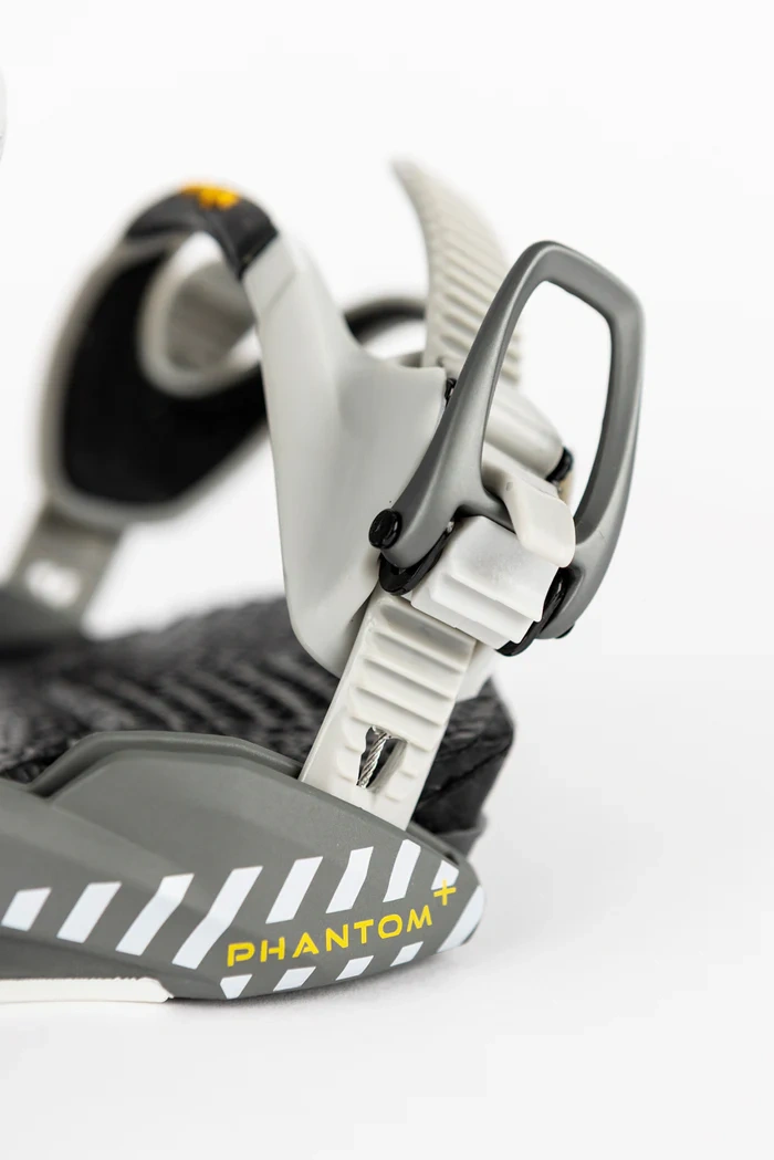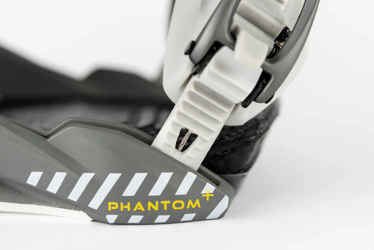 The Future of Precision Boarding Is Here! | The Phantom+ binding provides a unique riding experience with exceptional turning and carving control, thanks to the 4mm heel rise. It maintains its classic all-mountain performance while prioritizing dampening and customizable response for better comfort and fit when navigating through choppy terrain towards the end of the day. The focus is on enhancing the precision of the entire snowboard interface, including boots, bindings, and board, to help intermediate to pro riders improve their turning power and control. The new Phantom Plus is perfect for those passionate about connecting perfect turns in style all over the mountain.