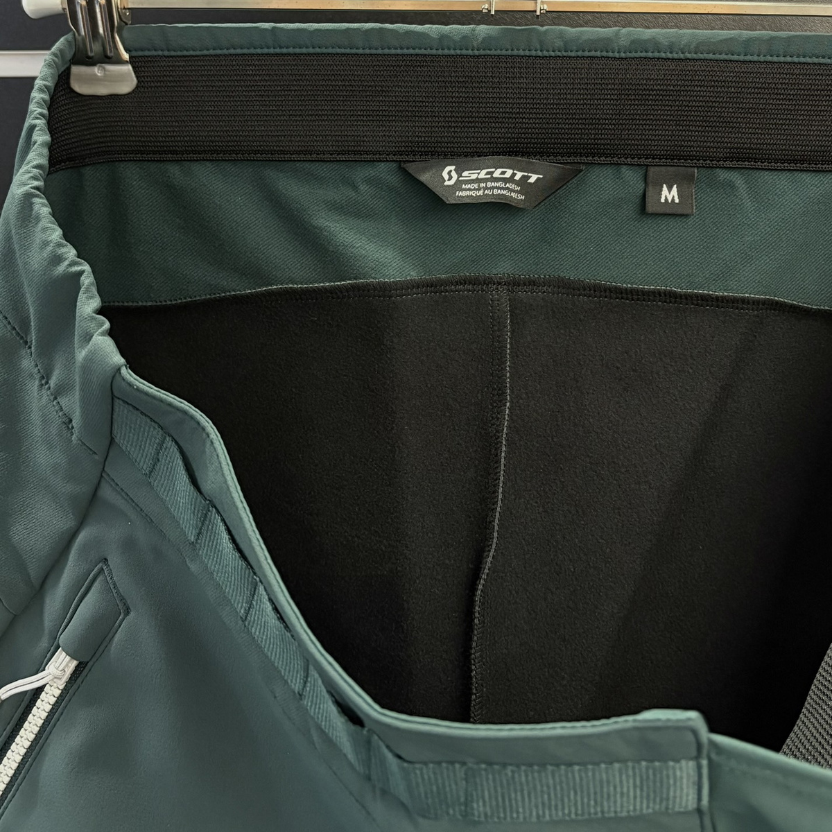 SCOTT Pants M's Trail Storm HYBRID | ocieplane spodnie rowerowe | 3L | aruba green | When it's cold and wet, the only pants that can save you are the SCOTT Trail Storm Hybrid pants. These warm and partially waterproof pants are designed for the coldest conditions and can be used for a variety of activities. The pre-shaped knees, with room for knee pads, make the pants extremely comfortable. Two zipped hand pockets keep your valuables accessible and secure without limiting movement. For the ascents and big efforts, the zipped side vents make the pants extra breathable.