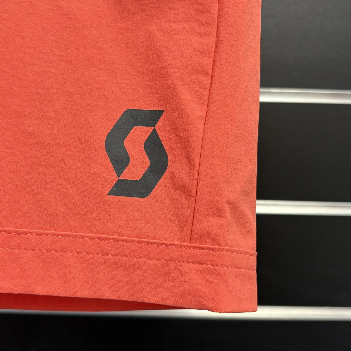 SCOTT Shorts W's Trail Flow w/pad | damskie szorty / spodenki rowerowe | + wewnętrzne spodenki z wkładką | MTB / ENDURO | astro red | Comfortable and giving you ultimate freedom of movement, the SCOTT Trail Flow Women's Shorts are casual-inspired and packed with trail-ready features. The 4-way stretch fabric is treated with DWR to avoid water saturation and keep you dry all day long. With a detachable inner padding, two hand pockets, and an adjustable waistband for a perfect fit, you've got everything you need to go up any mountain and back down any trail!