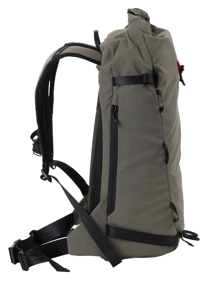 Especifically designed for backcountry splitboarding, minimalist yet multi- functional and variable in size.The main compartment can be expanded from 22-30L by its roll-top closure. A large, double zipper backpanel access lets you quickly get to all your gear, even if stuffed at the very bottom of your bag.