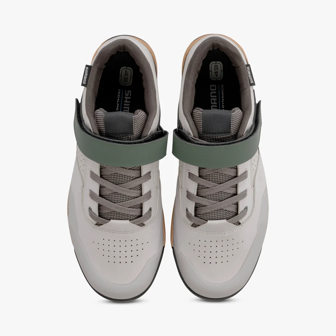 - Skateboard-style upper shoe with lacing and wide strap on the instep for a secure hold when pedaling aggressively.