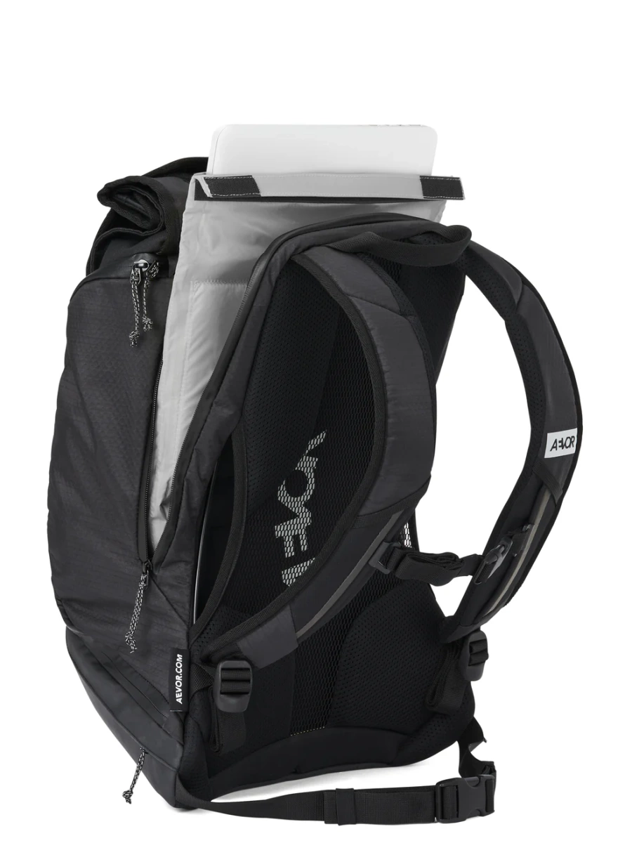 AEVOR Bike Pack PROOF Black 18-24l | plecak rowerowy / miejski / wyprawowy | z USZTYWNIACZEM / WENTYLACJĄ | WATERPROOF 13K + LAPTOP 15" IPX DIN