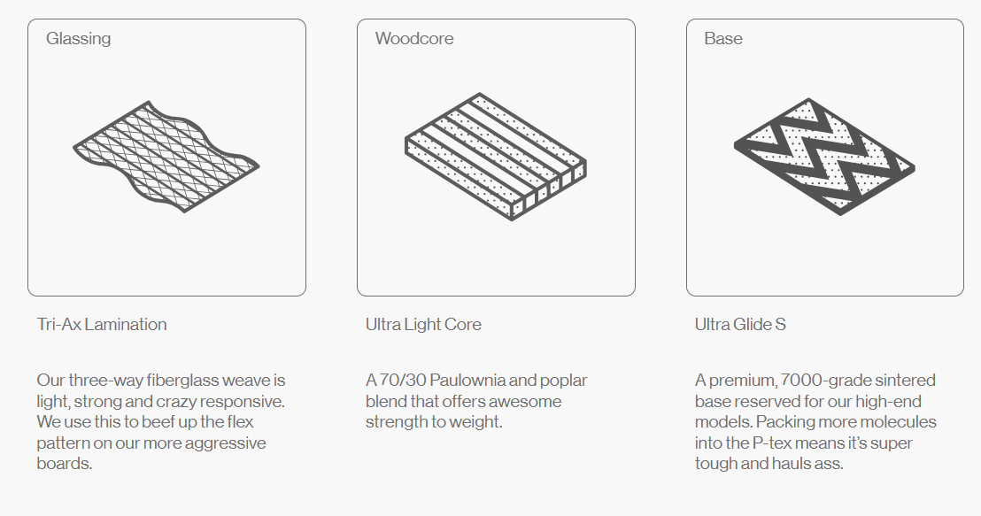 Tri-Ax Laminate  Bataleon's three-way fiberglass weave is light, strong and crazy responsive. It is used to beef up the flex pattern on more aggressive boards.